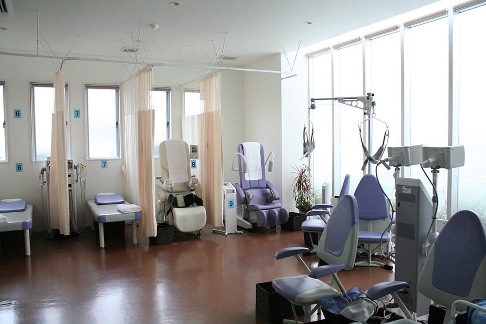 自立した生活が送れるよう全力でサポートしています。理学療法士が3名在籍し、運動器リハビリを丁寧に行うほか、ウォーターベッドや低周波治療器など充実した医療機器も揃え、安心して治療を受けられる環境を提供しています。広い駐車場と院内はバリアフリーになっていて、車いすでも通院が可能です。