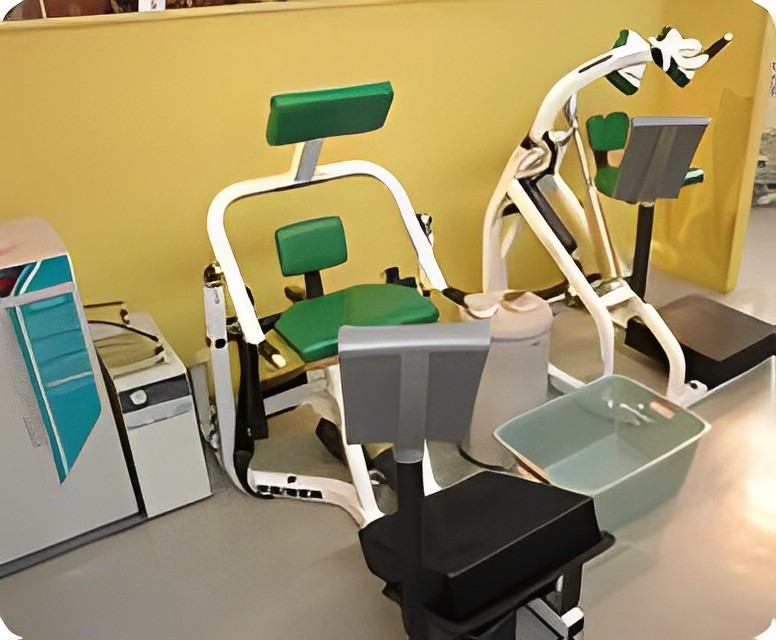 オープン型MRI装置を導入しており、明るく開放的な環境で検査が可能です。また、運動療法によって筋力強化や体操指導を行い、筋肉の緊張緩和を図っています。さらに、リハビリ室には牽引や低周波、温熱療法の機器を備え、症状に応じて活用しています。