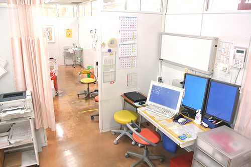 野球など上肢障害のスポーツケガに特化し、小中学生の肘・肩の診察に十分な時間をかけて対応する整形外科。DEXA装置による骨粗鬆症診断にも対応し、広くゆったりとした待合室でリラックスして診察を待てる環境を整えている。
