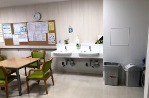 広く設備の整ったリハビリテーション室で、理学療法士が一人ひとりに合わせた運動器リハビリテーションを行います。 院内はバリアフリー対応で、車いすやベビーカーのまま通院・移動できるため、安心して利用できます。 初診時には順番予約番号を配布し、その後はアイチケットサイトで待ち時間を確認できるため、待ち時間を把握して便利に受診できます。