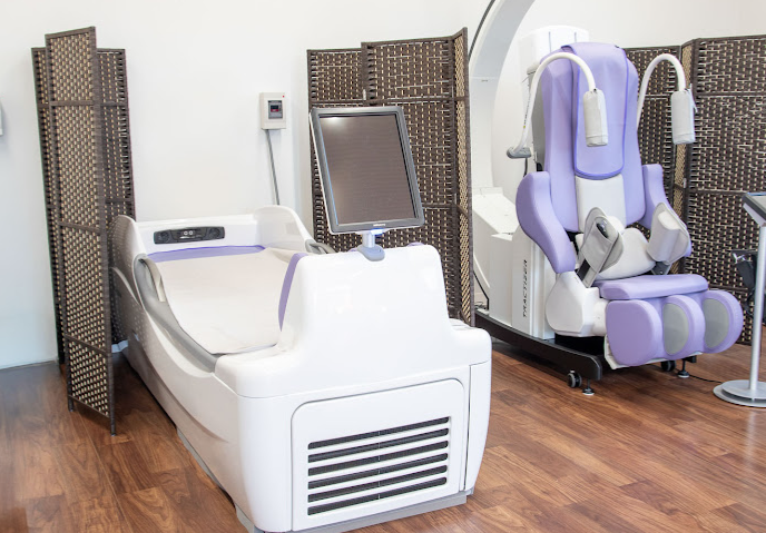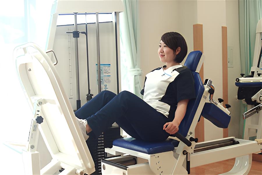 天井が高く広々とした、陽光が差し込む明るいリハビリテーションセンターを備えています。また、電気温熱療法機器や超音波治療器、ウォーターベッド型マッサージ装置など多様な機器を完備しています。